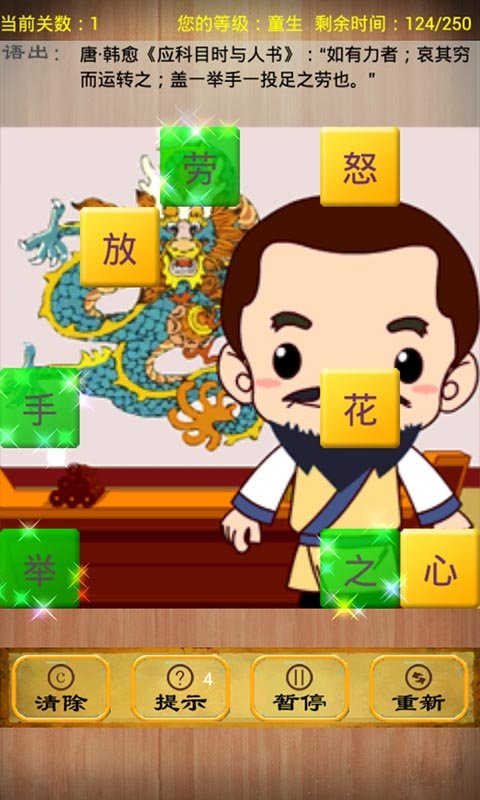 2.欢乐成语挑战将普通的学习变成一种有趣的体验,让成语学习变得不再枯燥。这是一款适合所有中文爱好者的游戏,无论你是希望提高自己的中文水平,还是简单想找一个有趣的游戏来打发时间,它都是一个不错的选择。
