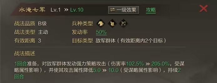 战法搭配需围绕补足输出与强化辅助展开。推荐携带焰焚箕轸或水淹七军等群体谋略战法,弥补大乔单体伤害不足的缺陷;辅助战法可选择重整旗鼓或鼎足江东,进一步巩固队伍续航。注意避免与避其锋芒等减伤战法冲突。宝物选择以提升谋略或发动率的扇类武器为主,例如仁风或鹤唳。