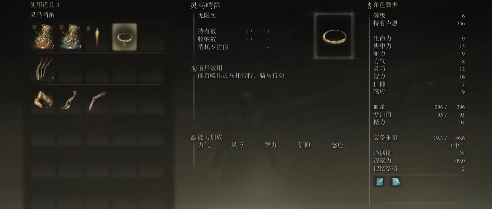 前期加点应优先满足装备需求,智力需提升至18点以装备陨石杖,生命值建议加到20左右避免被秒杀。集中力提升至20可保证蓝量充足,避免频繁喝药中断战斗节奏。武器方面除陨石杖外,名刀月影是近战备用选择,其战技居合斩能有效应对快速敌人。防具可搭配腐败野狗骨灰增强生存能力,骨灰召唤需21点专注值,初期可通过刷魂快速达成。