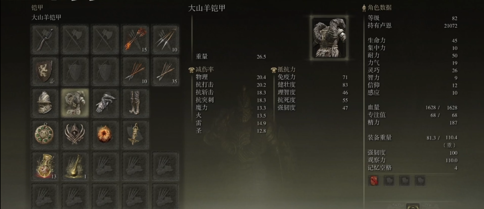 近战猛男们可以优先考虑大山羊套装,虽然重量感人,但强韧度和防御力堪称天花板,穿上后站撸BOSS不是梦。如果嫌太重,失乡骑士轻装或拉塔恩套装也是优质替代,前者灵活性强,后者颜值与属性双在线。护符记得搭配增加负重的物品,比如大山羊护符,否则可能变成慢动作战士。武器方面厚重质变的黑铁大锤配合指纹盾,攻防一体,尤其适合新手开荒。