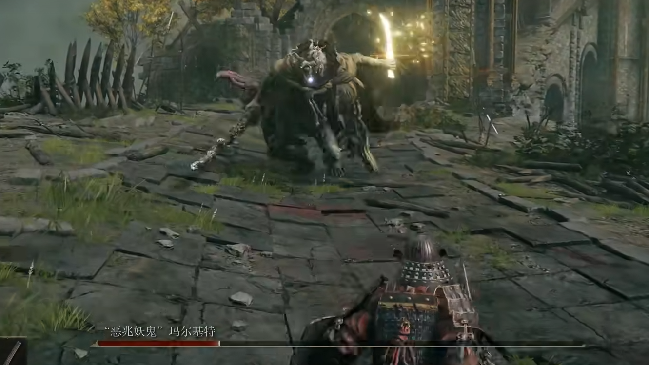 第一关的推进路线分为两条:一是从关卡前方赐福点直通风暴山丘,二是绕道啜泣半岛完成低难度支线。推荐先探索啜泣半岛,获取黄金种子、圣杯露滴等强化道具。返回主线后,在风暴山丘激活更多赐福点并击败恶兆妖鬼玛尔基特,此战需灵活利用环境障碍规避其突进技能。胜利后可进入史东薇尔城,但初期装备不足时建议暂缓攻城。