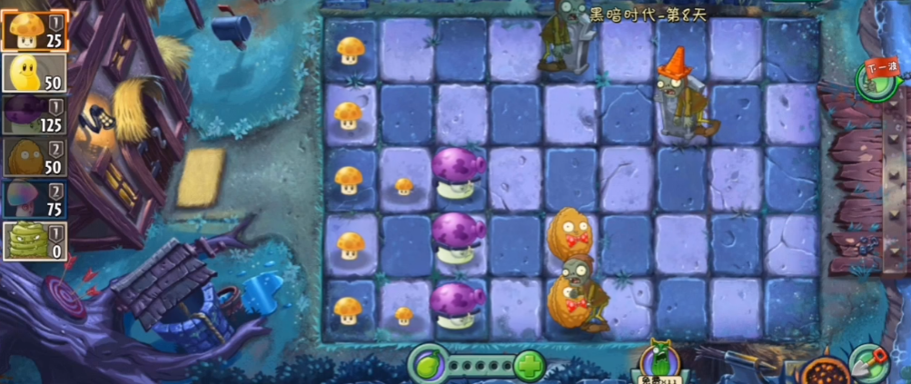 黑暗时代第8关需重点应对骑士僵尸的高防御特性,建议使用大喷菇大招实现秒杀。阳光菇建议种植两排以保证充足阳光供给,路灯花需前置布置以消除迷雾视野障碍。菜问与双重射手构成主要火力输出,配合樱桃炸弹处理僵尸集群。该关卡需随时注意补种被吃掉的路灯花,避免因视野缺失导致防线崩溃。