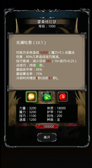 开局手动操作法师加技巧,祭祀加抗性,这两个buff特别重要。然后就可以切自动了,让金龙把除了法师外的队友都秒掉,这样它的dot伤害就不会太致命。接下来就是持久战,骑士要专心给法师加血,法师自己也要开1%奶队友。整个过程大概要8分钟左右,一定要有耐心。如果发现金龙回血太快,可以带些削弱治疗的道具,比如特定的法术书或者护符。