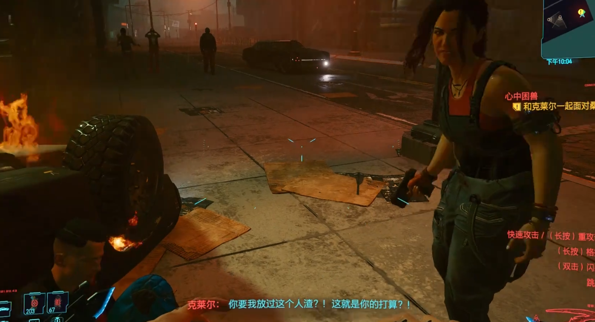 劝克莱尔放下仇恨,首先需要在完成她的复仇任务后选择和她一起坐车回车库。到达车库附近时,她会把车送给你,但别急着离开,立刻下车跟着她,她会进入车库并关门。这时候你会发现她坐在小房间里喝闷酒,房间里还有个流浪汉。先和流浪汉对话,一定要把他赶出去,否则无法触发后续的关键对话。