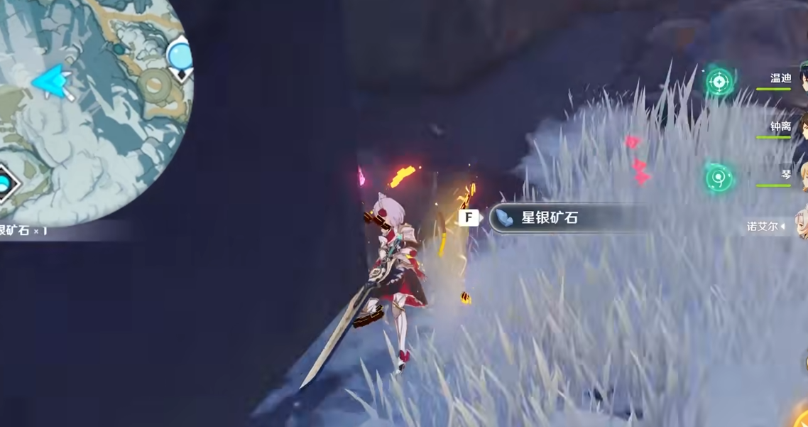想快速收集星银矿石,可以直接前往龙脊雪山地图的覆雪之路入口。这里木桥前的矿点一次能拿到4-6块,顺路还能在附近捡到额外矿石,路线简单效率高。眠龙谷外围靠近河岸的位置也有两处矿点,一处藏在挑战装置后面的石头旁,另一处需要沿着山脚向左走,遇到冰霜丘丘法师后往上爬就能看到,总共能收获6-7块。