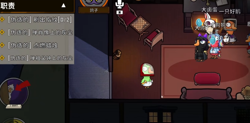 鸽子的战略价值在于其伪装性,最佳策略是模仿好人鹅行为,通过抱团降低怀疑。由于中立身份不受阵营保护,需避免与带刀角色单独接触,特别是游戏后期存活玩家减少时,需平衡感染进度与生存概率。当场上仅剩一人未被感染时,若该玩家被击杀或掉线,系统会判定鸽子获胜,这种特殊机制增加了后期翻盘可能性。但要注意,若最后未感染者被投票出局,则判定为鸽子失败。