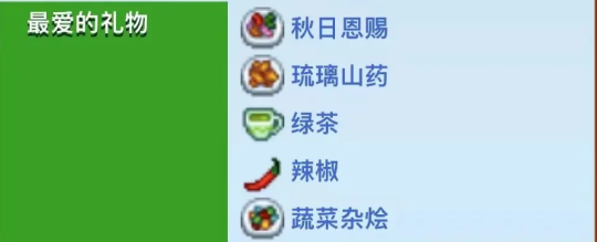 刘易斯最爱的礼物包括五彩碎片、珍珠、兔子的脚、黄金南瓜、魔法糖冰棍以及绿茶。这些物品中,五彩碎片和珍珠属于稀有资源,通常需要通过后期探索或特殊活动获取;兔子的脚可通过饲养兔子获得,黄金南瓜和魔法糖冰棍则需参与季节性活动或完成特定任务。绿茶可通过种植茶树或购买获得,是相对容易准备的礼物。需刘易斯对工匠物品、花类(除虞美人外)及多数宝石也有较高接受度,但避免赠送油或虚空蛋黄酱等厌恶物品。