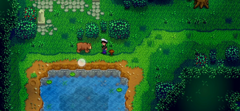 拿到枫糖浆后,在早上6点到晚上7点之间进入秘密森林。秘密森林的入口被一个大木桩挡住,需要用钢斧砍开才能进去。进去之后会触发一段过场动画,一只可爱的熊会出现在你面前。这时候把枫糖浆交给它,熊会非常开心,作为回报,它会给你看一些好东西,并传授你熊的智慧。