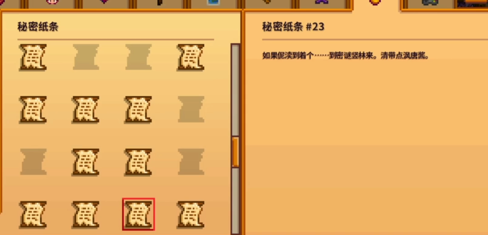 完成奇怪纸条任务,首先得找到秘密纸条23。这张纸条会通过邮件发送给你,记得及时查看信箱哦。阅读邮件后任务就自动接取啦,接下来你需要准备一瓶枫糖浆,这可是任务的关键道具。枫糖浆可以通过在枫树上安装树液采集器获得,记得提前准备好,别到时候手忙脚乱。