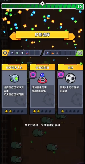 合成过程中A型和B型无人机得先升到满级,医疗无人机至少要有1级。这样在局内升级时,系统才会给你合成神圣毁灭者的选项。如果运气不好没刷到医疗无人机,可以试试多打几局或者调整技能选择顺序,毕竟合成超武有时候也得看脸。