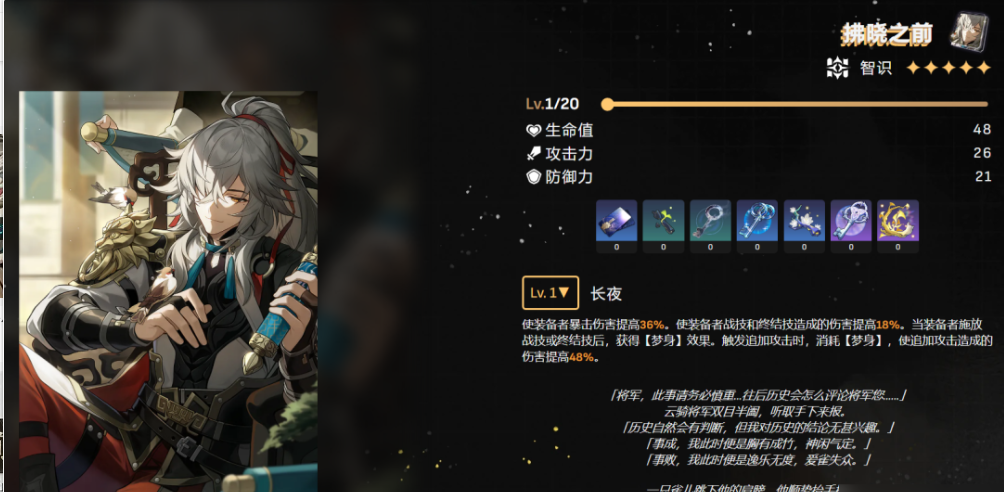 光锥方面专武拂晓之前最契合,提供高额暴伤和战技/终结技增伤。下位替代可选常驻五星银河铁道之夜,对群时能提升攻击力,破盾后增强追加攻击。四星里我的诞生和今日亦是和平一日也不错,前者强化追加伤害,后者根据能量上限提供稳定增伤。如果资源有限,优先保证遗器套装效果,光锥可以逐步升级。