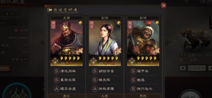 配将是游戏中的核心玩法之一,合理的武将搭配能极大提升队伍战斗力。武将搭配并非简单将强力角色堆砌在一起,而是需要考虑兵种适性、战法联动、属性互补等多方面因素。兵种适性从高到低分为S、A、B、C四个等级,S级能发挥120%属性效果,A级为100%,B级和C级则分别只有85%和70%,因此组建队伍时应优先选择同兵种下适性高的武将组合。