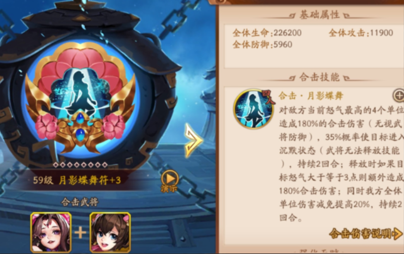 合击符与战法搭配直接影响蜀国阵容的实战表现。月影蝶舞适合一号位先手沉默,惊雷裂空用于清除减益,乘风与神勇战法则提供属性增益。神兽选择上,紫金兽协战优于红神兽。锦囊推荐暗渡和瞒天,优先配置给赵云以叠加护盾。战法方面,鹏云九天与赵云的高连击特性契合,姜维的挑衅可触发太公六韬召唤玄武,增强团队抗暴与格挡。需注意合击符的释放时机,避免资源浪费。
