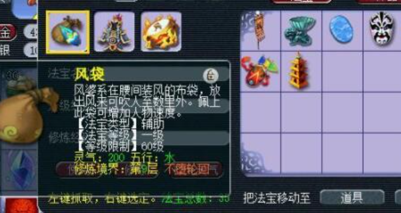 法宝的选择直接影响战斗效率和生存能力。核心法宝包括飞剑、金甲仙衣、风袋和降魔斗篷,这些是提升输出和防御的基础配置。飞剑作为物理输出的核心,能显著提升伤害,而金甲仙衣和降魔斗篷则分别针对物理和法术伤害提供减伤效果。风袋则用于调整速度,确保狮驼岭在战斗中能优先出手。
