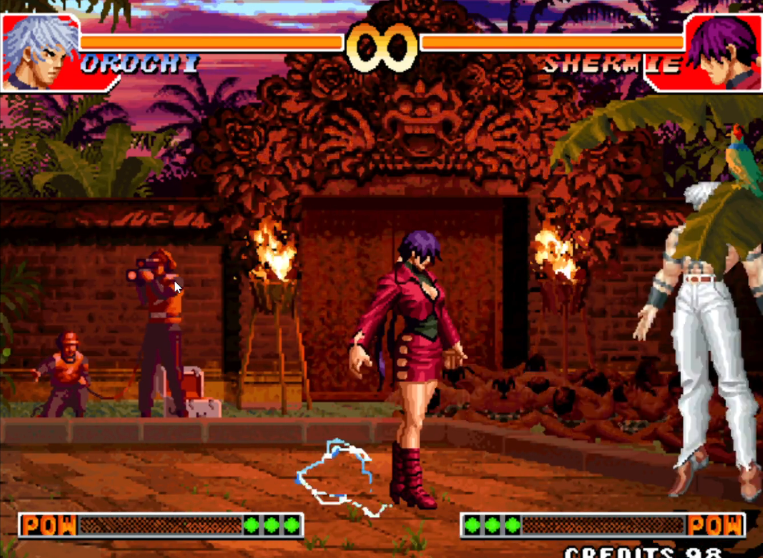 调出隐藏人物后,他们的技能释放方式也很有讲究。比如暴走八神庵的八稚女是↓↘→↘↓↙←+A或C,而疯狂莉安娜的旋转火花是↓↘→↘↓↙←+A或C。大蛇队的阳光普照(↓↙←↙↓↘→+A或C)是全屏攻击,伤害极高,但要注意释放时机,避免被对手打断。