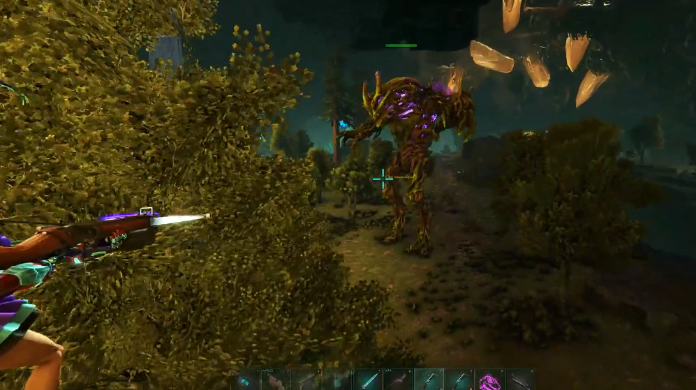 森林泰坦的驯服关键在于精准击破其三个腐化瘤部位,分别为双肩和下巴。每个腐化瘤需要承受固定次数的攻击:双肩各11次,下巴8次,推荐使用步枪等高精度武器。驯服过程中需注意森林泰坦对小型生物具有秒杀能力,建议保持安全距离或利用地形掩护。