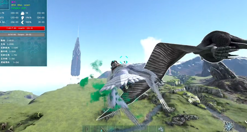 风神翼龙属于食肉恐龙,因此在驯服过程中必须准备足够的肉类食物。优质生肉(大腿肉)是仅次于霸王龙蛋饲料的第二选择,获取相对容易且效果较好。优质熟肉虽然也能使用,但驯服效率会有所下降。需风神翼龙的驯服时间较长,必须准备足够的麻醉药或黑色浆果来维持其眩晕值,否则可能导致驯服失败。驯服过程中要随时观察风神翼龙的状态,及时补充食物和麻醉剂。