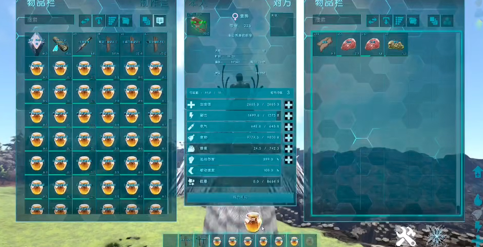 驯服风神翼龙的准备工作还包括选择合适的武器和装备。推荐使用长管步枪配合强效麻醉药,这种组合既能有效提升眩晕值,又不会对风神翼龙造成过多伤害。十字弩和麻醉箭也是可选的工具,但需要更多射击次数。在食物准备方面,建议优先制作霸王龙蛋饲料,如果条件不允许,至少要准备大量优质生肉或大腿肉。食物品质直接影响驯服速度和成功率,因此不能忽视这一环节。