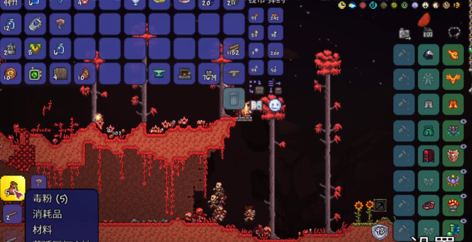 如果你觉得跑来跑去收集材料有点麻烦,或者当前阶段暂时去不了猩红之地挖蘑菇,那还有个更直接的法子——找树妖买。游戏里的树妖NPC也是个不错的货源。当你的世界处于猩红地形,并且碰上了血月事件的时候,去找树妖对话打开她的商店,你就能直接看到毒粉在货架上摆着了,价格也不贵,一份卖一个银币。这方法特别适合那些手头有点小钱,又急着要用毒粉,或者暂时没空去折腾制作流程的玩家。毕竟血月事件在游戏里也不算太罕见,只要你生命值超过120点,每天晚上都有一定概率触发,到时候去找树妖就行,一手交钱一手交货,立马到手,非常省心省力。