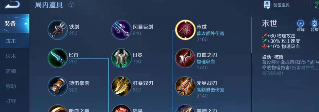 马可波罗作为依赖攻速的射手,出装核心需优先堆叠攻击速度以达到技能伤害阈值。急速战靴作为起步装备能大幅提升子弹发射频率,末世则为核心输出装,提供攻击力、攻速加成和吸血效果,其被动百分比伤害能有效对抗坦克英雄。后续补充纯净苍穹提供主动免伤和攻速,破晓则全面提升攻速、暴击与破甲效果,形成基础输出框架。