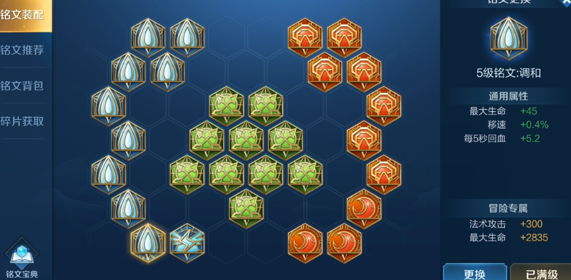 东皇太一的核心铭文搭配以提升生存和控制能力为主,主流选择是10宿命、10虚空、10调和。这套组合提供了1162点最大生命值、23点物理防御、6%冷却缩减以及4%移速加成,完美契合东皇依靠血量换血的特性。蓝色调和铭文的回血效果让前期反野更具侵略性,绿色虚空铭文缩短技能真空期,红色宿命则强化普攻与技能衔接的流畅度。对于追求极致输出的玩家,也可将红色铭文替换为10梦魇,配合88法穿属性在中期打出更高爆发,但会牺牲部分坦度。