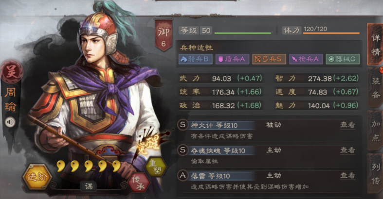 明确了战法的价值,下一步就是考虑由谁来携带它才能发挥最大效力。由于战法伤害受智力影响且以火攻为主,它自然非常适合周瑜、陆逊这类本身就擅长火攻的谋略型核心武将,能够极大化其输出能力。除了传统的都督队,它也能适配一些拥有双高属性的武将,例如姜维、赵云,他们的武力与智力成长都不错,可以同时利用到战法的谋略灼烧和兵刃攻击两部分伤害。像郝昭这类武将携带也能打出不错的双核输出效果。在阵容搭配上,它可以与熯天炽地、风助火势等战法组合,进一步叠加火攻伤害。需由于它的主要价值在于施加和利用灼烧,在敌方较多藤甲兵队伍的环境中,其战略价值会变得尤为突出。