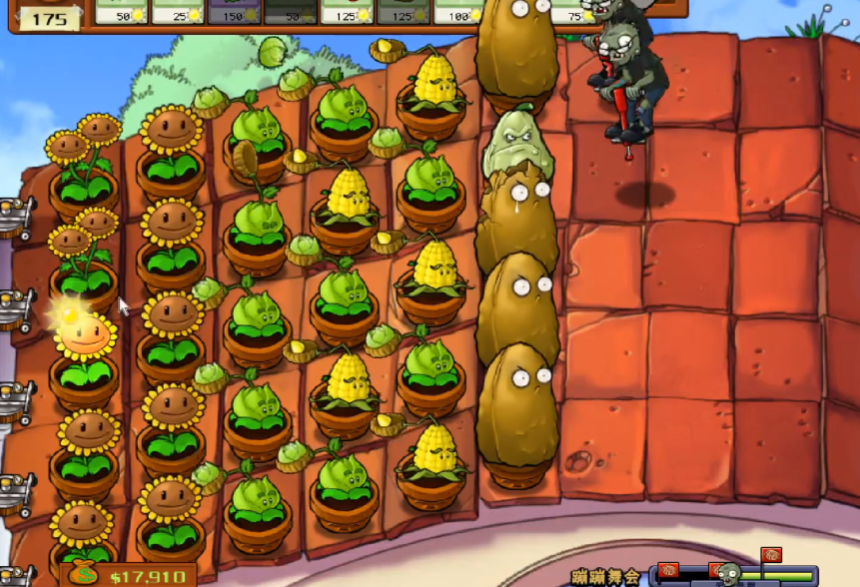 通关蹦蹦舞会关卡的核心在于针对其主力敌人跳跳僵尸进行植物阵容的合理搭配与游戏节奏的精准把握。该关卡设置在屋顶场景,跳跳僵尸凭借弹跳杆可以高速移动并越过大多数普通植物,因此必须选用能够克制其跳跃能力的植物,例如磁力菇、高坚果和倭瓜。磁力菇能够吸走跳跳僵尸的弹跳杆,使其丧失跳跃能力并减速;高坚果可以直接阻挡跳跳僵尸的跳跃路径,迫使其撞掉弹跳杆;倭瓜则用于快速处理单个突进的威胁。整个通关过程需要平衡阳光资源的获取与防御火力的铺设,形成稳固的防线。