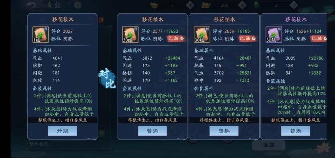奇经有不同品质,金色最好,紫色次之。高品质的奇经基础属性高,升级带来的收益也大。每条奇经的属性条目是固定的,比如阳脉第一个属性必定是攻击,阴脉第一个必定是防御,后面的属性才是随机的。在资源有限的情况下,优先保证主战套的那套奇经的等级,尤其是金色品质的。平时通过各种日常和活动攒材料,慢慢把核心奇经的等级提上去,属性的增长会非常可观。