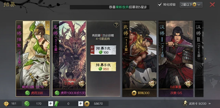 玩家可以通过拆解特定的武将来获取强弓连射战法,这通常需要消耗同名卡牌,因此在资源分配上需优先考虑武将自身配置需求,再决定是否拆解。这一方式为获取该战法的主要途径之一,需注意保留高价值或高进阶度的武将卡,避免不必要的消耗。另一种直接获取强弓连射的途径是通过游戏内的招募系统,直接获得拥有此战法的对应武将,这需要玩家持续关注招募机会并合理利用游戏内资源。