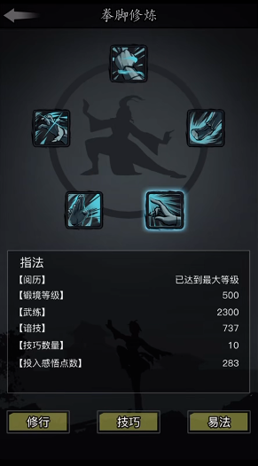 技巧系统是拳脚修炼的另一大模块,它不再分为五个分支,而是统一在一起进行挂机修炼。你需要通过日常任务或挂机获取潜思经验,从而提升潜思等级(上限为500级),并获得感悟点来投入拳脚技巧的修炼中。技巧槽位的加成对主副手都有效,但同一系的技巧不会叠加。师门系统在基本拳脚修炼中扮演着重要角色,它不仅提供多种武学技能,还能通过请教和请安加速成长。加入师门后,你可以与当前师傅互动,学习基本功和武学技巧。条件满足,比如完成特定任务或达到等级要求,你就能向更高阶的师傅学习,获取更强大的拳脚招式。