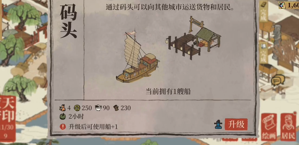 成功解锁苏州府后,船运功能便自动启用,其操作入口位于城市的大地图界面。玩家点击屏幕左下角的府印,选择进入大地图视图,在地图上找到码头和停泊的空闲船只图标,点击即可进入船运操作界面。玩家可以选择将资源或特殊居民从已解锁的城市运往另一个已解锁的城市。船运主要用于在应天府与苏州府之间调配物资,以解决苏州府初期基础资源匮乏的问题,实现两城优势互补。