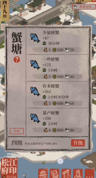 将拥有相关加成的居民如祝枝山派驻到松江府,并持续安排他在改良农田或蟹塘中工作,能够显著增加螃蟹的掉落几率与数量。如果没有祝枝山,也可以尝试使用其他有类似效果的角色。通过让松江府内空闲的居民轮番进入这些生产建筑工作,可以确保生产不间断,实现螃蟹的持续积累。参与游戏内的各类州府活动、完成特定任务,有时也能将绿螃蟹作为奖励获得。偶尔发生的抓倭寇事件或仓库失火等随机情况也可能带来螃蟹。