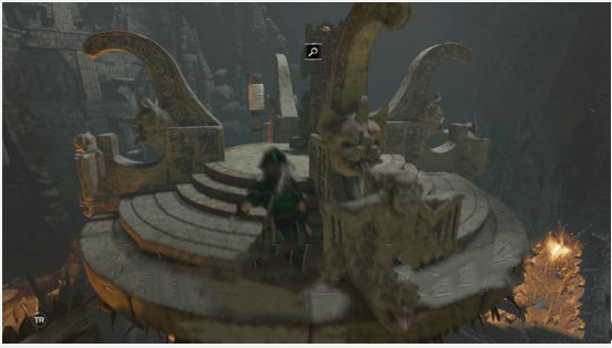 隐秘之城内包含数个极具挑战性的独立古墓,其解谜逻辑往往自成体系。例如死亡细语古墓,玩家需要深入洞穴,穿过水井潜入地下水域,在此过程中需破解水下机关,并最终在封闭水道的尽头找到石棺以获取奖励。另一个被称为太阳神庙的古墓,其内部是一个庞大的多层旋转结构,玩家需从中央转盘降至下层环形平台,沿途拉动特定机关使中央石柱的部件收折,并抓住收折后产生的短暂安全窗口,快速沿环形道路避开新激活的陷阱前进。如此重复操作,直至石柱因故障完全停摆,方能攀至顶端取得关键物品。攻克这些古墓不仅能获得强大的装备加成,也是达成区域完全探索的重要标志。