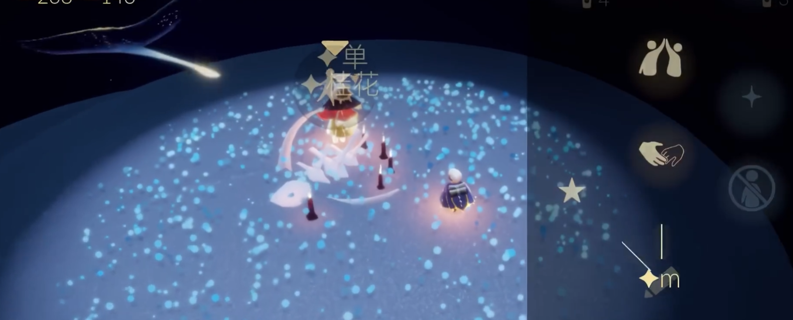 来到三楼后,视角往右拖动屏幕,远处悬浮石台上会发光,那就是第三位先祖。这位先祖动作是双手交叉站姿,解锁后能免费获得。四楼有两位先祖,第一位在左边小岛的鱼骨平台上,需要点燃周围蜡烛触发鳐叫声;第二位在对面的破亭子浮石上,需要用一楼祈祷动作点亮石头才能召唤。