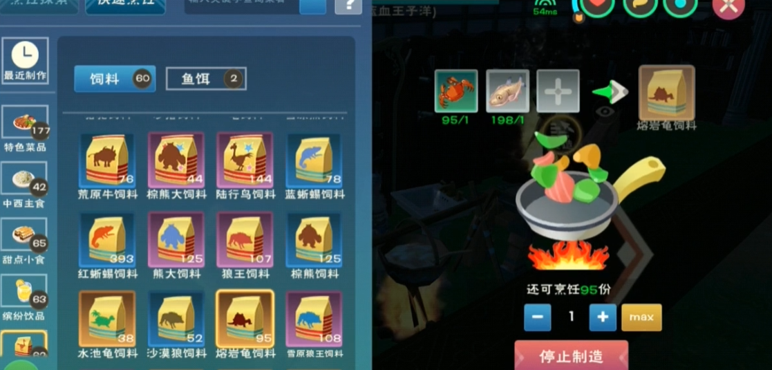 捕捉岩浆龟需要准备特定的饲料,配方由大闸蟹和鲤鱼组成。大闸蟹可以在云河、浣花溪和心悦河等水域使用蚯蚓钓取,鲤鱼则分布更广,几乎在所有水域都有概率获得。饲料制作过程简单,将两种材料放入烹饪锅即可完成。建议准备足够数量的饲料,因为捕捉过程可能需要多次尝试。