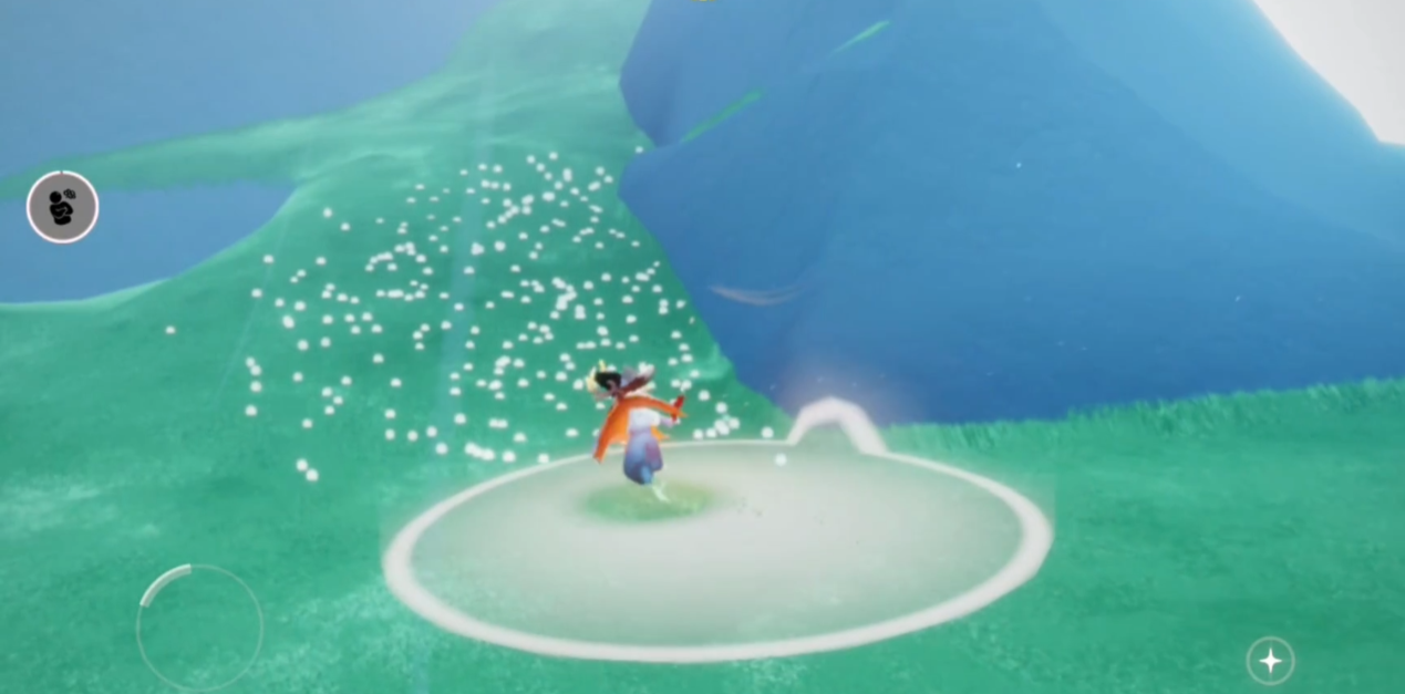爬山先祖的收集路线需要从山脚开始,沿着山坡一点点向上行走。过程中必须保持耐心,避免使用飞行功能,否则光圈会立即消失并需要重新开始。最难的部分是中间的山谷区域,这里建议轻轻跳跃前进,不要大幅飞行。如果遇到能量不足的情况,可以寻找附近的小黑人或光蝶补充能量,但孤狼玩家需要自行控制节奏。