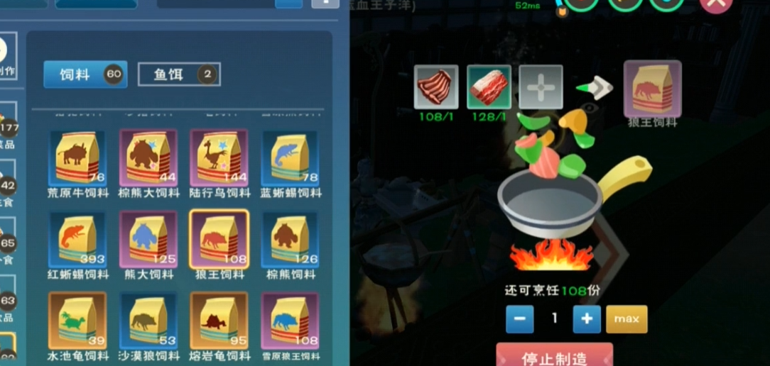 狼王饲料需要生羊排和优质肉,沙漠狼王还要额外加土豆饲料包。生羊排通过击杀绵羊获取,优质肉则要打20级以上的野怪,土豆可以在沙漠采集。把这些材料放进烹饪锅就能合成饲料,建议一次性多做几包,保底需要11-15包才稳妥。记得提前把木棒、饲料和捕捉器放在快捷栏,方便操作。