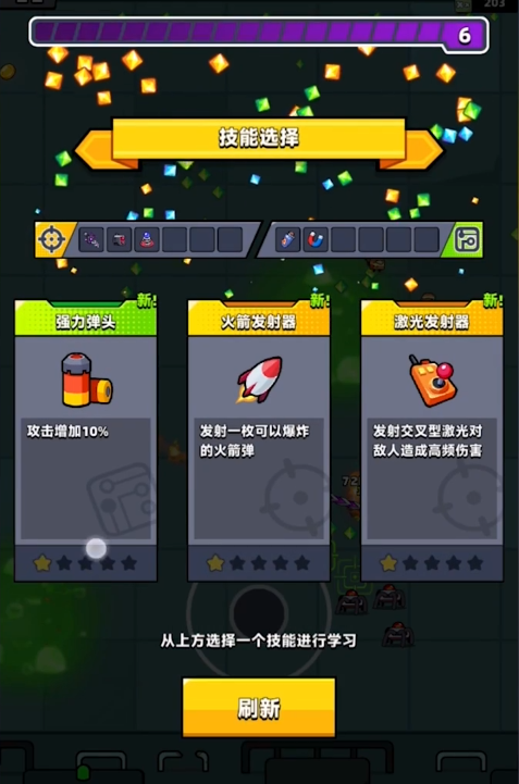推荐使用苦无作为主武器,其自动追踪特性可减少操作压力,配合金色时尚腰带、金色复活甲等防御装备提升生存能力。技能选择上优先升级榴莲、火箭、轮盘、砖头、闪电,辅助技能需搭配经验券、攻击范围加成、机械部升级等被动效果。前五分钟应集中将苦无升级为红武,并将砖头升级为哑铃,确保前期清怪效率。
