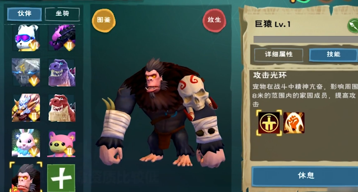 布置陷阱是个好办法,把陷阱放在它常走的路径上,周围放些镇静剂增加成功率。如果知道它爱吃的食物更好,能引诱它上钩。巨猿靠近陷阱时保持隐蔽,等它中招后立刻用镇静剂防止它挣脱。成功捕捉后要尽快带回家,建个围栏或笼子安置,不然它醒来可能逃跑。驯服后的巨猿很实用,它能给周围队友加攻击光环,相当于给武器附魔。虽然升级经验需求高,养起来有点费劲,但作为过渡宠物或PVP辅助都很不错。平