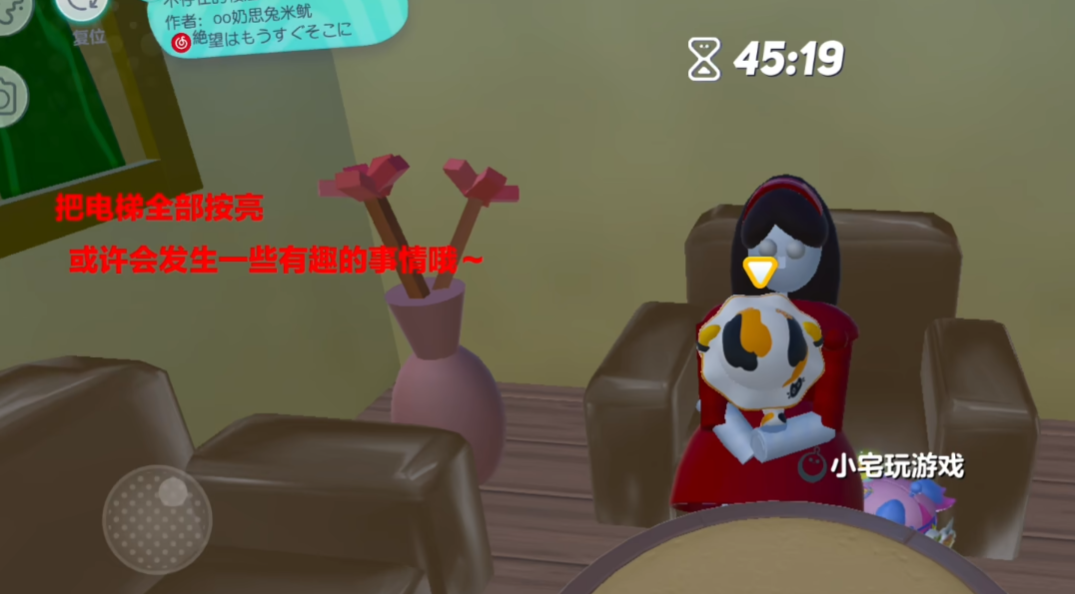新房间的被子下藏着遥控器,关掉电视后人偶姿势会变化。去浴室打开淋浴再出来,会发现人偶拿着锤子。搬凳子垫脚拿到锤子后,去走廊尽头推开大钟,后面暗门里藏着红衣女孩。和她对话后会触发追逐战,所有人要狂奔到走廊尽头按电梯按钮逃离。最后和乞丐对话,他会告诉你刚才进入了不存空间,这时候才算真正通关。