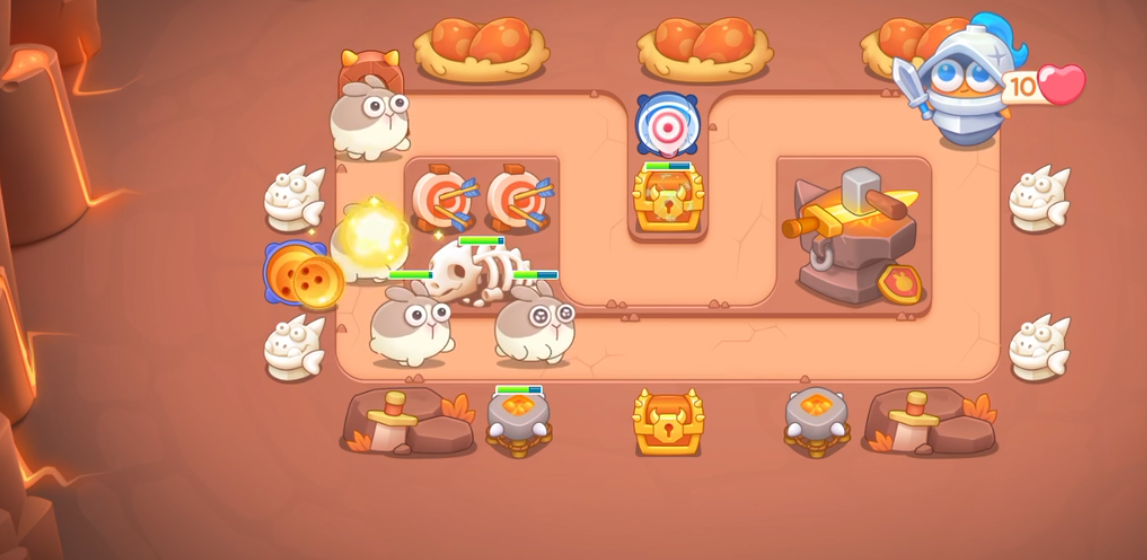 玩这个模式时要特别注意炮塔的选择和摆放位置。保龄球和魔法球这类范围伤害的炮塔特别实用,能同时清怪和开图。记得优先打掉火山障碍,不然它会一直喷火干扰咱们建造。遇到吊索兔时千万别单独放炮塔,这些小坏蛋会偷走咱们辛辛苦苦建的防御设施。