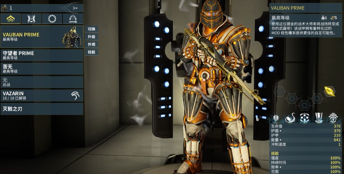 Vauban是星际战甲中专注于区域控制与战术防御的工程师型战甲,其技能组以部署型装置为核心,擅长通过陷阱和力场改变战场格局。该战甲的设计理念强调团队协作与地形利用,适合中高难度任务中担任控场角色。获取方式需通过午夜电波系统的挑战任务兑换蓝图,制作周期较长但实战价值显著。