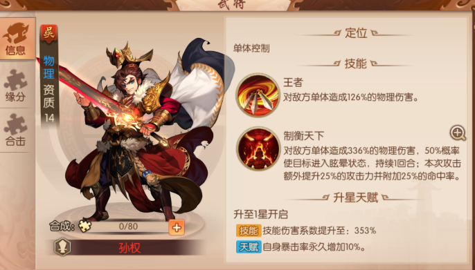 吴国武将的站位需要根据敌方阵容灵活调整,但通常采用吕蒙一号位优先出手,孙权和孙坚分列二三号位承担伤害与控制。鲁肃或太史慈置于四号位,大乔和主角则安排在最后排。装备方面,孙坚推荐霸王套装提升生存能力,吕蒙选择惊鸿套装增强暴击属性,治疗型武将应以速度和防御属性为主。战魂搭配上,不动如山适合孙坚,破军能最大化吕蒙的收割效率,而控制型武将则优先考虑延长debuff持续时间的效果。