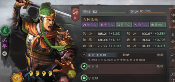 武将培养方面需注重性价比,紫卡阵容如关平+丁奉的组合适合零氪开局,孙策、孙坚等首充武将配合郭淮能形成稳定输出体系。核心武将战法等级提升至10级优先于全队均衡发展,A级战法如避实击虚、轻勇飞燕等易获取且效果显著。觉醒只需消耗1个五星将+系统赠送武将,战法点有限时应集中强化主将。兵种适性尽量选择S级配置,优先使用兵刃输出型武将组建菜刀队,避免依赖概率触发的策略队。