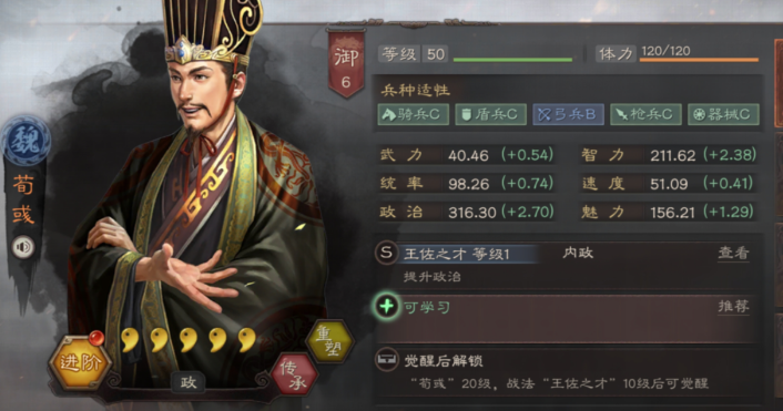 内政武将的升级效率相比战斗武将较为缓慢,这是由于他们主要通过资源生产等被动方式获取经验。部分特殊技巧可以提升经验获取效率,例如曹丕作为功能性内政主将时,能通过缩短建筑升级时间间接加速整体发展节奏。四大屯田将如顾雍、卢植、钟繇等分别对应不同资源类型的产量加成,合理运用这些武将特性可以优化资源产出与经验获取的平衡。内政武将最多可携带三个战法,需达到20级才能开启全部战法格子。