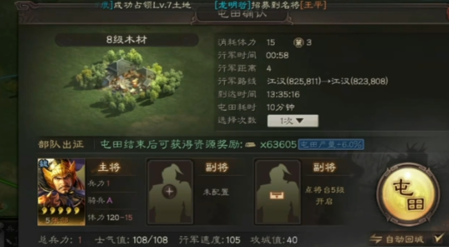 资源官的选择直接影响经验获取效率。税务官应作为五大资源官中的第一优先级,推荐使用政治属性高的武将如荀彧、曹丕或诸葛亮担任,并搭配B级政治技能。木材、铁矿、石料等资源官则建议学习A级屯田和B级产量提升类战法。在赛季中期,当势力值达到3万左右时,基础资源产量约为每小时7万,2.5%的全资源加成相当于额外获得4块7级地的产量,这种加成本质上也促进了经验积累的速率。