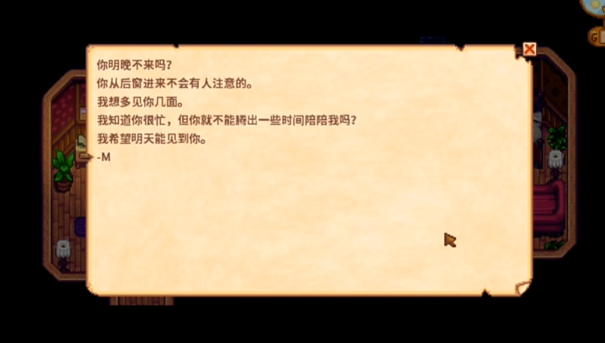 提升好感度的有效方式是赠送本地特产和自然材料,如琉璃山药、辣椒等其偏好的物品。完成村长发布的任务,如社区升级项目或物品找回委托,既能增进关系又可获得实用奖励。在特殊任务镇长的紫色短裤中,村长家与玛妮的牧场共同构成关键场景。该任务要求玩家在玛妮卧室的梳妆台寻找特定物品,触发条件包括好感度要求和时间段限制。