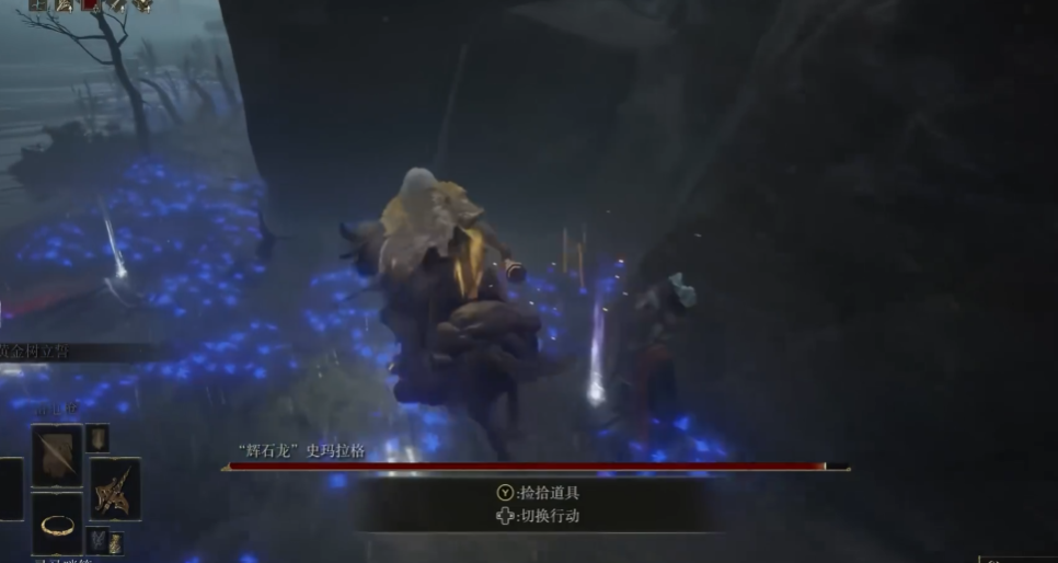 墓地区域存在多个可收集物品,包括战灰幻影枪和法术重力球。通过倒塌的墓碑可跳跃至下层平台,消灭粪金龟敌人后继续前进至建筑内部。该区域需注意升降机的使用,抵达上层后激活校舍内教室赐福点,并在附近房间获取辉石工匠制作笔记等道具。继续推进至三层阳台时,将遭遇BOSS拉达冈的红狼,击败后可获得记忆石并解锁讨论室赐福点。