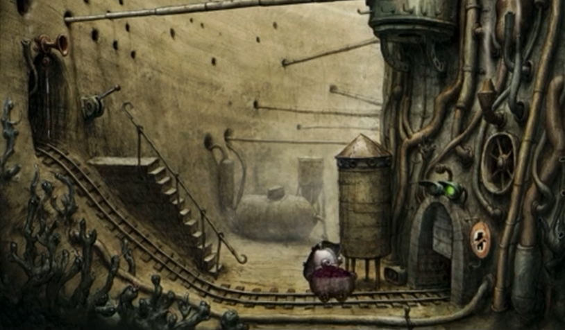 接下来咱们得拉伸身体跳上横杆,慢慢挪到最右边,拿到那个像菜刀的金色钩子。这玩意儿可得放对地方——把它放在下方铁轨上,千万别放错位置啦!放好之后拉动楼梯下面的铁钩,墙上的开关会被触发,矿车就会冲出来撞上金色钩子翻车。这时候赶紧把矿车的轮子卸下来,自己坐上去,再拉一次开关就能顺利过关啦!