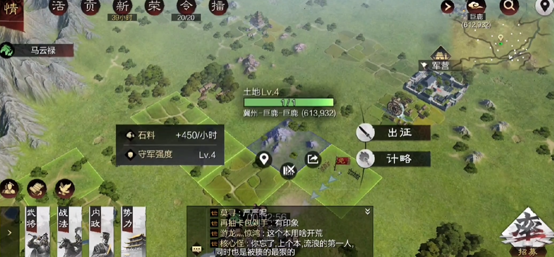 练兵系统是中期重要的经验来源,名望达到4000后解锁。在已占领的资源地上消耗政令和体力进行练兵,经验值与资源地等级直接相关。高级资源地练兵经验可达低级的数倍,建议优先选择高等级土地练兵。练兵经验由队伍中将领平分,若需集中培养单个将领可单独组队。该系统损耗较低且经验稳定,但受限于政令数量和体力恢复速度。